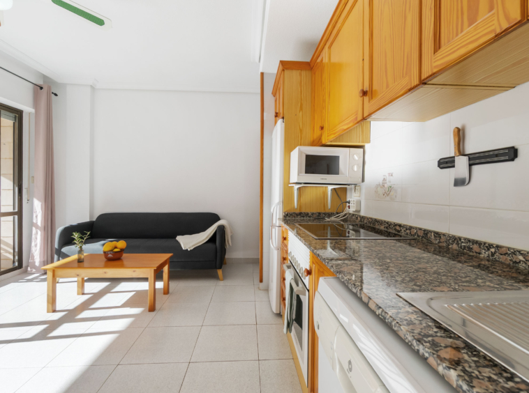 Lägenheten har ett mycket centralt läge i Torrevieja, bara ett stenkast från strandpromenaden och Playa del Cura. Här kan du finna lugn och ro i urbana omgivningar.