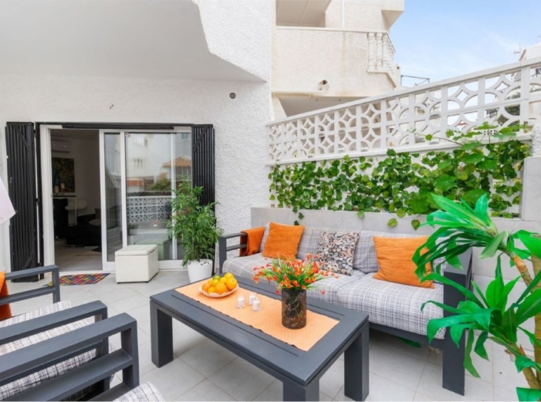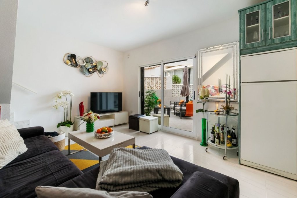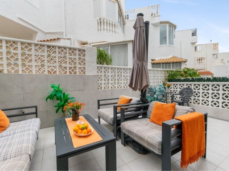 Välkommen till populära La Provenza i Torrevieja! Här hittar du ett mycket trevligt radhus med trädgård, balkong och stor takterrass med havsutsikt – perfekt både som fritidshus och året runt-boende.