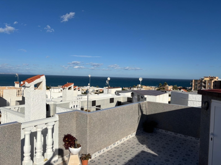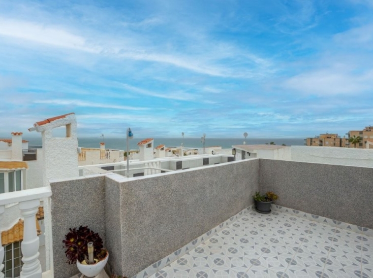 La Provenza/Torrevieja – Fantastiskt radhus med takterrass och havsutsikt – bara 350 m från La Mata-stranden.